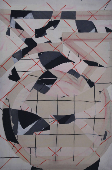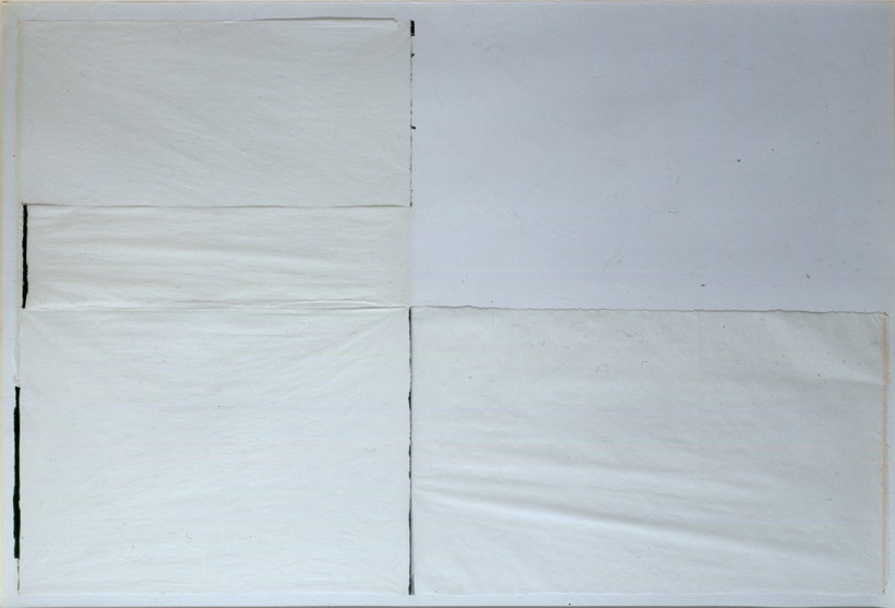 Christian Bonnefoi - Dos 14 - 2009 - collage mural papier de soie graphite et acrylique - 116 x 197 cm
